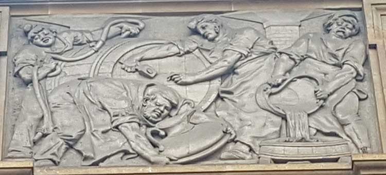 When that building was demolished, in 1976, the friezes were moved to their current location on Britton Street, and here they remain, proud reminders of a long-gone past, when Clerkenwell was the centre of production for a drink that has a decidedly unsavoury history; and which, given that its 19th century incarnation became known as "Mother's Ruin", continued to afflict the lives of those who quaffed it long after its infamous 18th century heyday had passed.